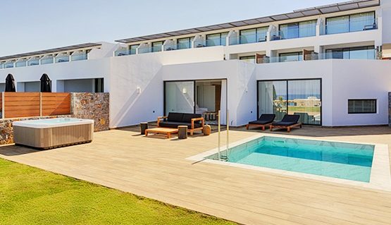 One of the suite’s main attractions is the private outdoor Jacuzzi, where it is possible to enjoy the breathtaking landscape at any time of day – be it amongst the glistening ocean waves during day or the twinkling constellations at night. Bask in the Cretan sun from the privacy of your own crystalline swimming pool.